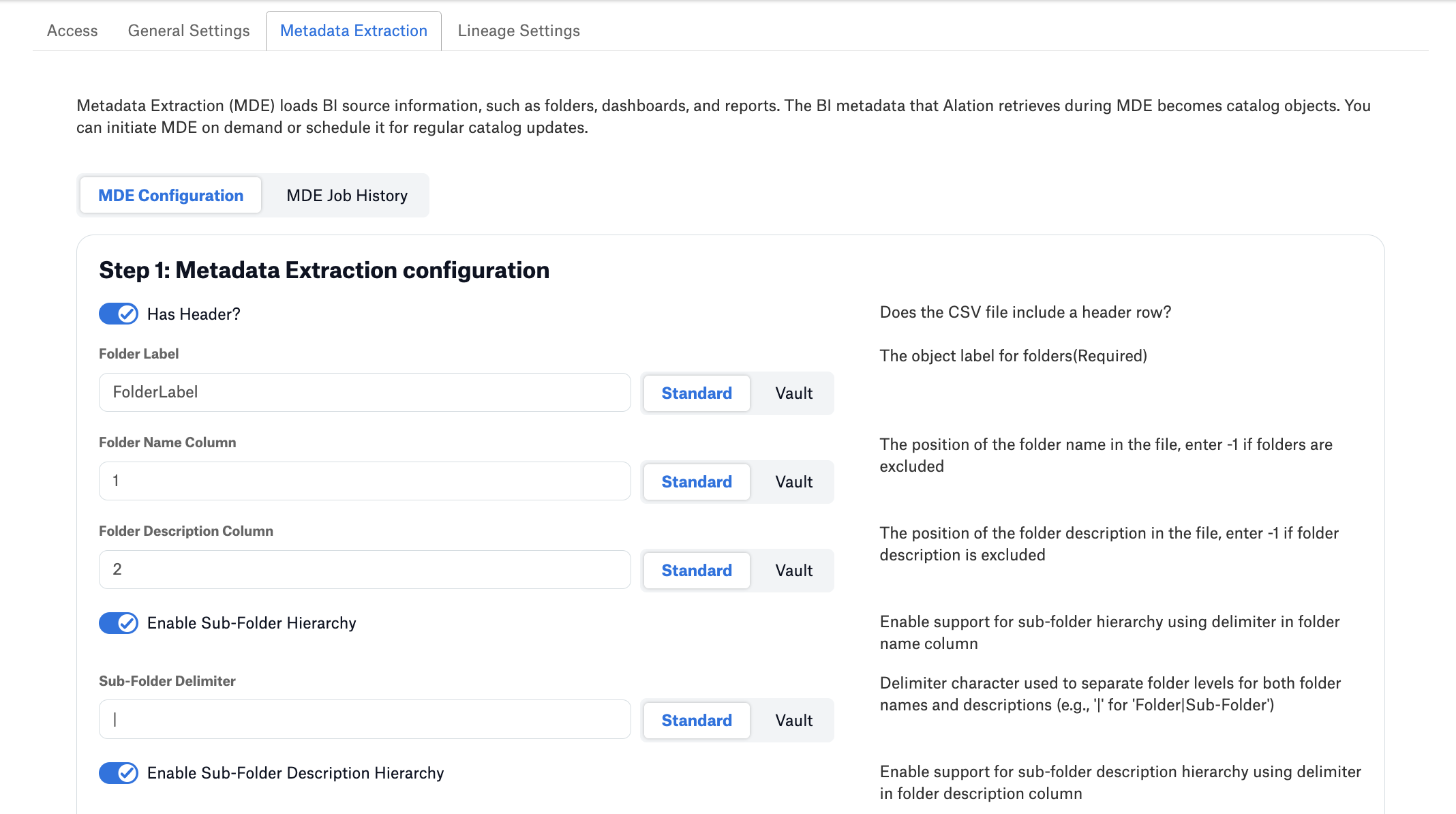 Click Run Extraction Now to extract metadata. The status of the extraction action is also logged in the Job History table at the bottom of the page.